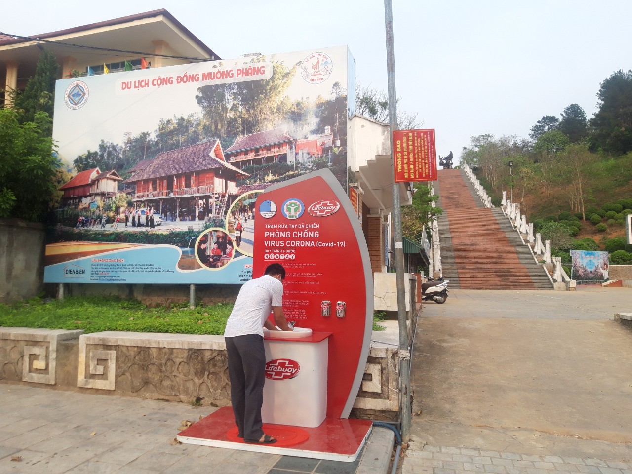 Được sự đồng ý của Ủy ban nhân dân tỉnh Điện Biên tại Văn bản số 764/UBND-KGVX ngày 20/3/2020 về việc lắp đặt Trạm rửa tay tại thành phố Điện Biên Phủ do Ban Chấp hành Đoàn tỉnh Điện Biên đề xuất, sáng ngày ngày 09 tháng 4 năm 2020 Ban Chấp hành Đoàn tỉnh Điện Biên đã triển khai lắp đặt tại khu vực Sân hành lễ Tượng đài Chiến thắng Điện Biên Phủ 01 Trạm rửa tay dã chiến (do Công ty Unilever Việt Nam, nhãn hàng Lifebuoy tài trợ kinh phí lắp đặt và nước rửa tay) trị giá 50 triệu đồng.