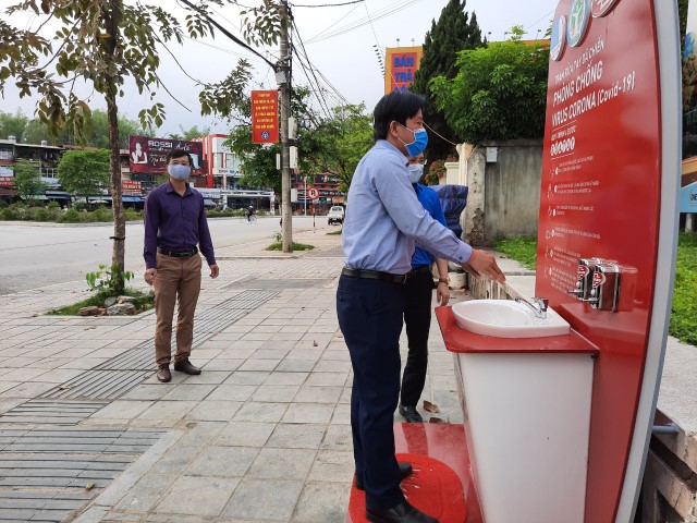 Người dân TP. Điện Biên Phủ rửa tay tại Trạm rửa tay dã chiến