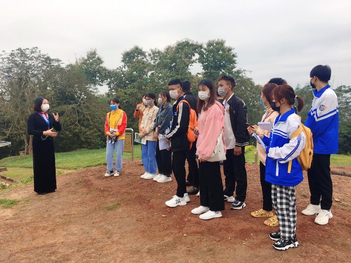 Hình ảnh Sinh viên thực hành, nghe hướng dẫn tại Di tích Đồi A1