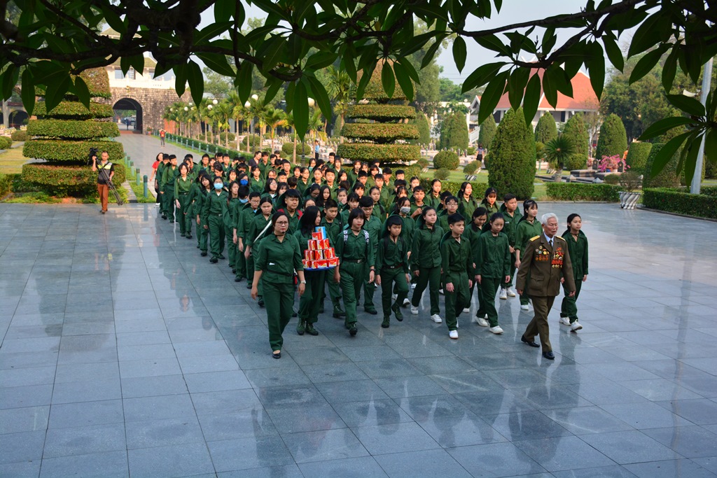 Tham dự Chương trình có đồng chí Phạm Thị Thảo - Phó Giám đốc Ban Quản lý di tích; đồng chí Kháng Mai Thu - Bí thư Thành đoàn thành phố Điện Biên Phủ, các thầy cô giáo và 90 em học sinh của 2 trường THCS Him Lam và THCS Mường Thanh với những hoạt động: thắp nến tri ân, tuyên thệ và trao cờ luân lưu trải nghiệm thi đẩy xe đạp thồ, “Hành quân thần tốc” và “Bữa cơm chiến sĩ” đã tạo cho các em học sinh của hai trường khí thế sôi nổi, ấn tượng và phấn đấu bước vào kỳ thi kết thúc năm học với kết quả cao nhất.