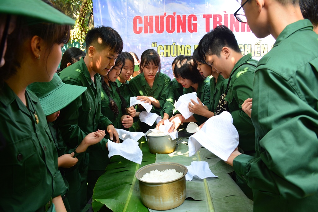 Sau cuộc hành quân thần tốc sang khu trải nghiệm di tích đồi A1, các em học sinh được trải nghiệm tham gia phần thi “Bữa cơm chiến sỹ” với những món ăn đơn giản nhưng đảm bảo dinh dưỡng và hấp dẫn. Hơn thế nữa, các em học sinh cùng thầy cô giáo quây quần bên nhau, thưởng thức bữa cơm với những món ăn do chính các em chuẩn bị với những tiếng cười và giọt mồ hôi, cảm xúc khó quên sau khi tham gia một chương trình ý nghĩa.