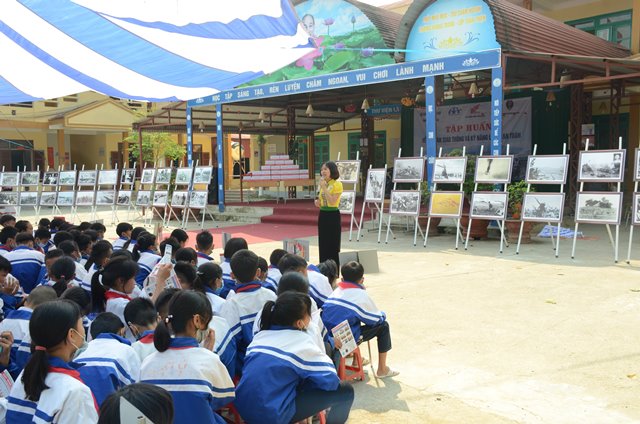 Ảnh: Hướng dẫn viên giới thiệu cho học sinh