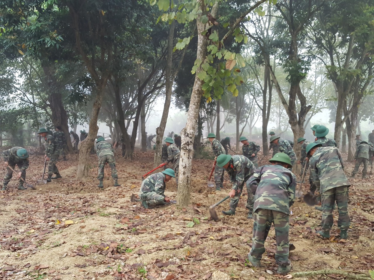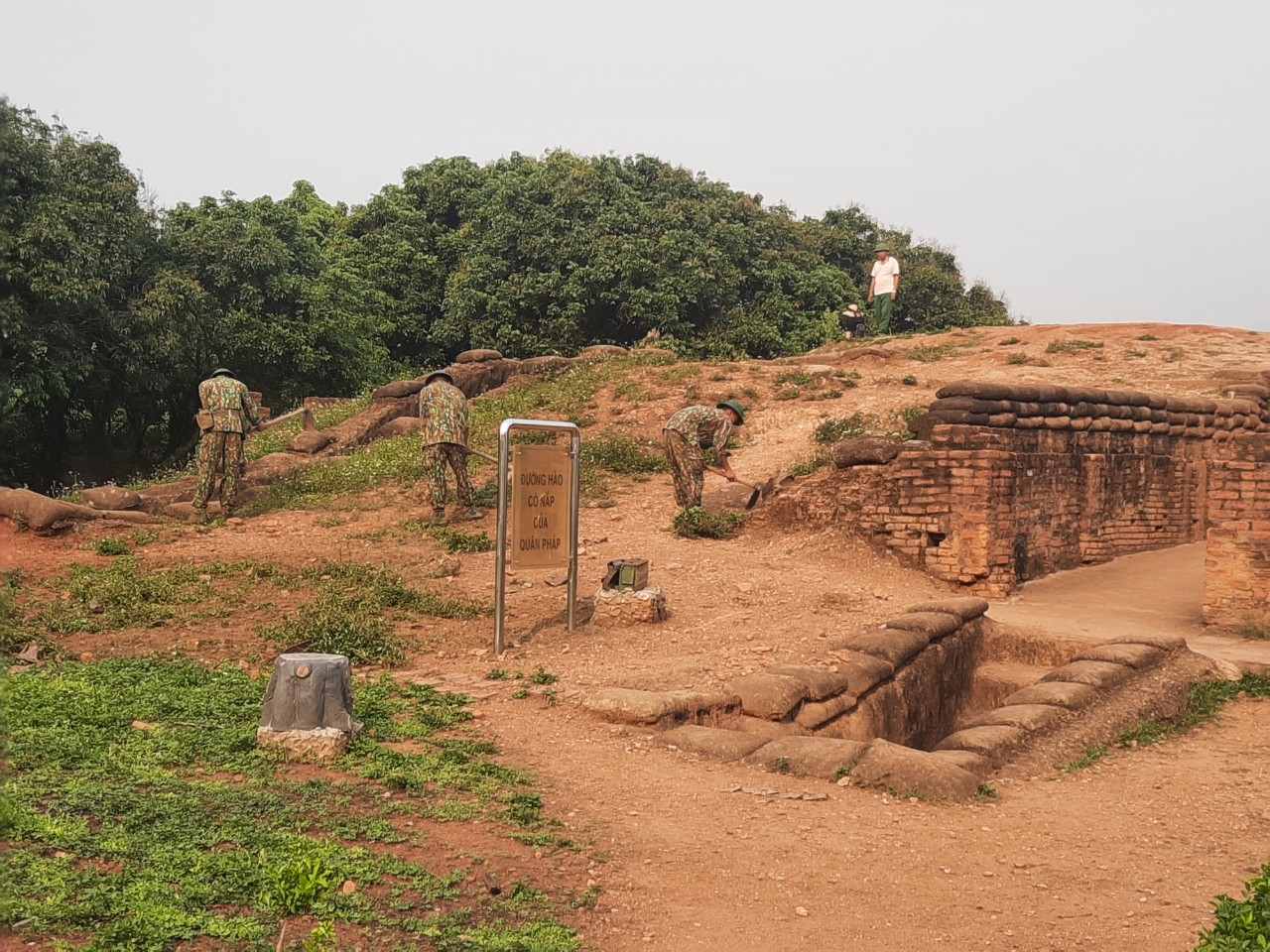 Một số hình ảnh viên chức, người lao động BQLDT và cán bộ, chiến sỹ Trung đoàn Bộ binh 82 tham gia cải tạo cảnh quan môi trường các điểm di tích