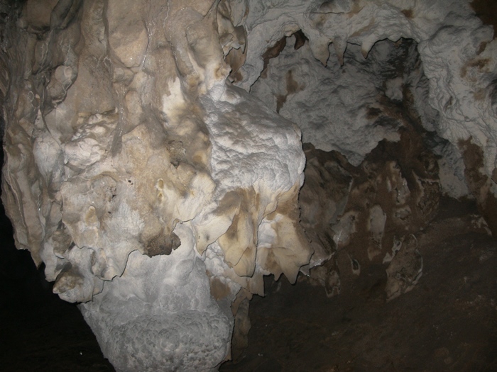 Để sang được khoang thứ 3 du khách phải tỉ mỉ và cẩn thận bám dây đi men theo vách đá cao gần 3m trơn trượt, một cảm giác mạo hiểm, muốn tiếp tục khám phá phía bên trong động. Khoang thứ 3 nằm ở vị trí thấp hơn so với 2 khoang trước, có chiều dài khoảng 200m, nơi rộng nhất 15- 20m, vòm cao trung bình 15 - 25m. Trần, vách động là những khối nhũ đá màu xanh xám rủ xuống với đường nét khi thì mềm mại, uyển chuyển như thác nước, lúc mang dáng vẻ sắc nhọn như san hô biển. Từng tinh thể canxi chứa đựng trong mỗi giọt nước nhỏ xuống nền động, lắng đọng; kết dính với nhau, khô dần tạo ra cho động một số nhũ đá hình măng mọc, cây xương rồng, cây thông nhỏ, nhiều hình thù kỳ lạ kích thích trí tưởng tượng của mỗi người.