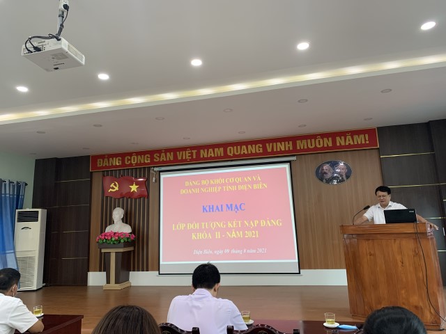 Từ ngày 09/8 đến ngày 16/8/2021, tại Hội trường Đảng uỷ Khối Cơ quan và Doanh nghiệp tỉnh Điện Biên tổ chức lớp bồi dưỡng lý luận chính trị cho đối tượng kết nạp đảng. Lớp bồi dưỡng bao gồm 57 học viên là những đoàn viên ưu tú, công đoàn viên ưu tú hiện đang công tác tại một số Sở, ngành, đơn vị và doanh nghiệp trong tỉnh.