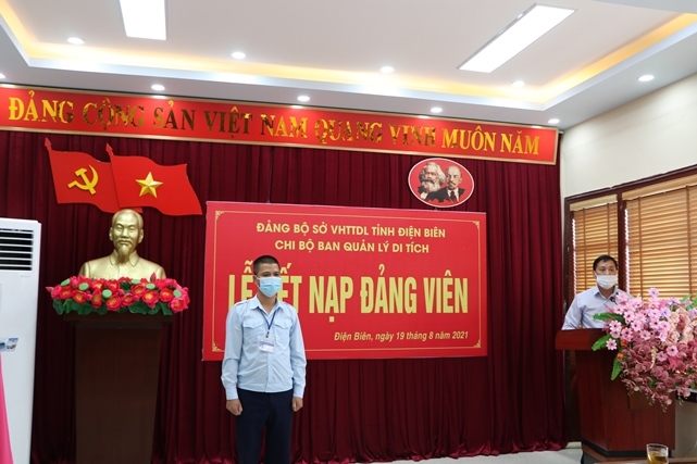 Sáng ngày 19/8/2021 tại Hội trường của Sở, được sự nhất trí của Đảng bộ Sở Văn hóa, Thể thao và Du lịch, Chi bộ Ban Quản lý di tích tỉnh Điện Biên đã tổ chức Lễ kết nạp Đảng viên cho 02 quần chúng ưu tú Nguyễn Thị Hồng và Lê Hồng Phương.