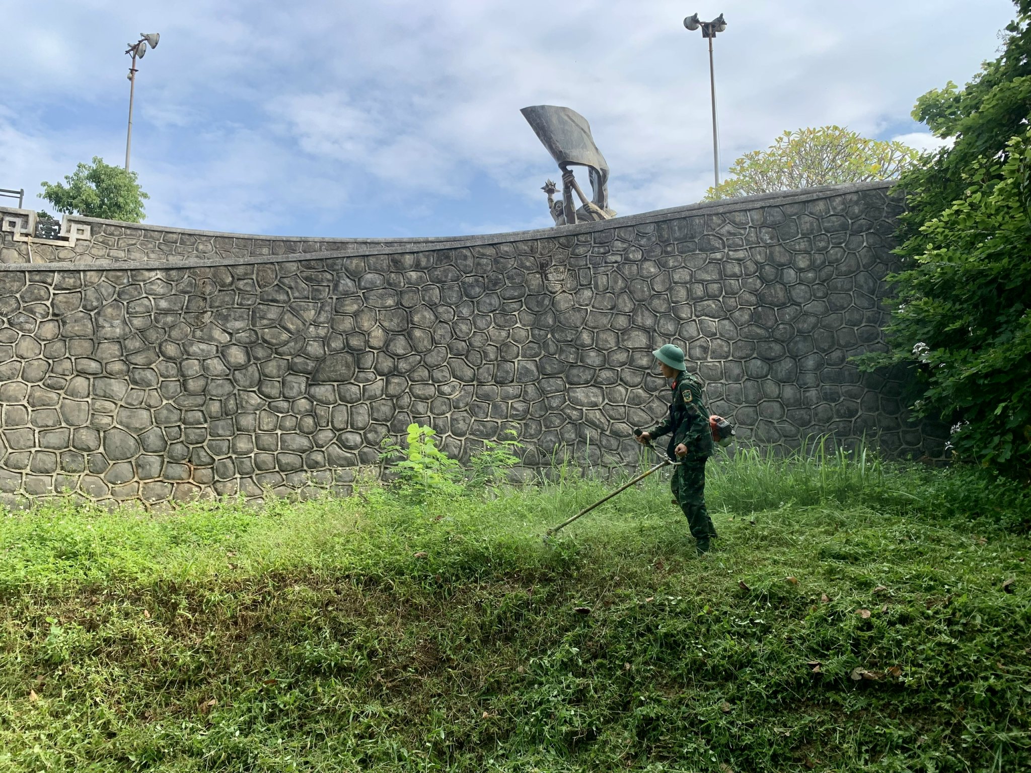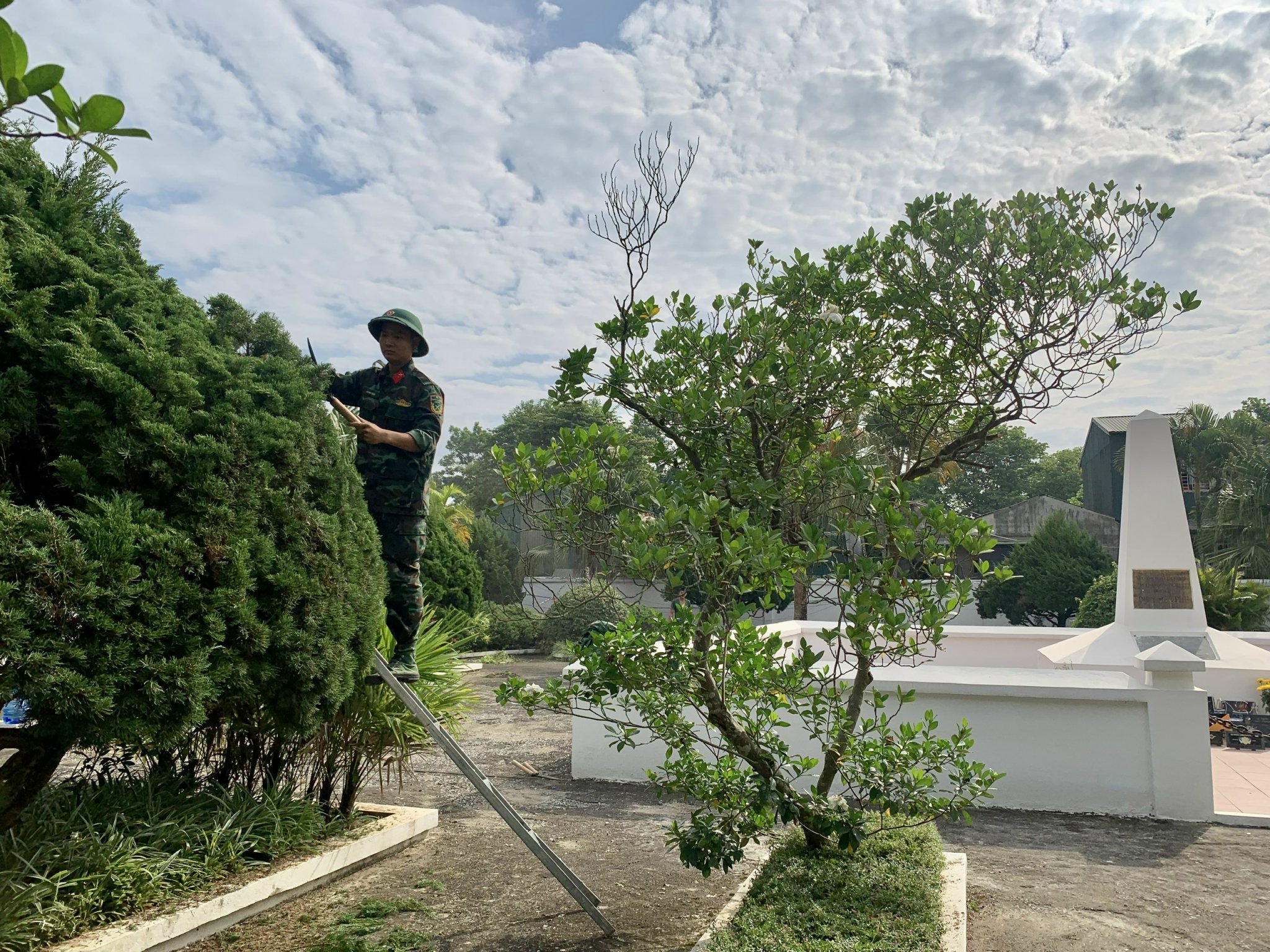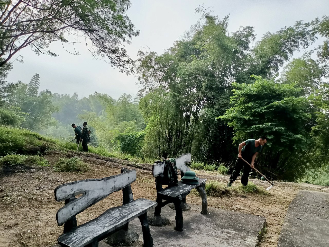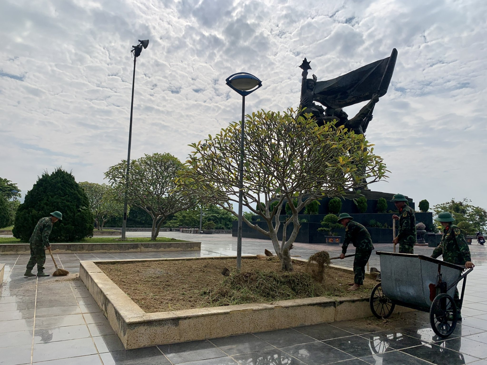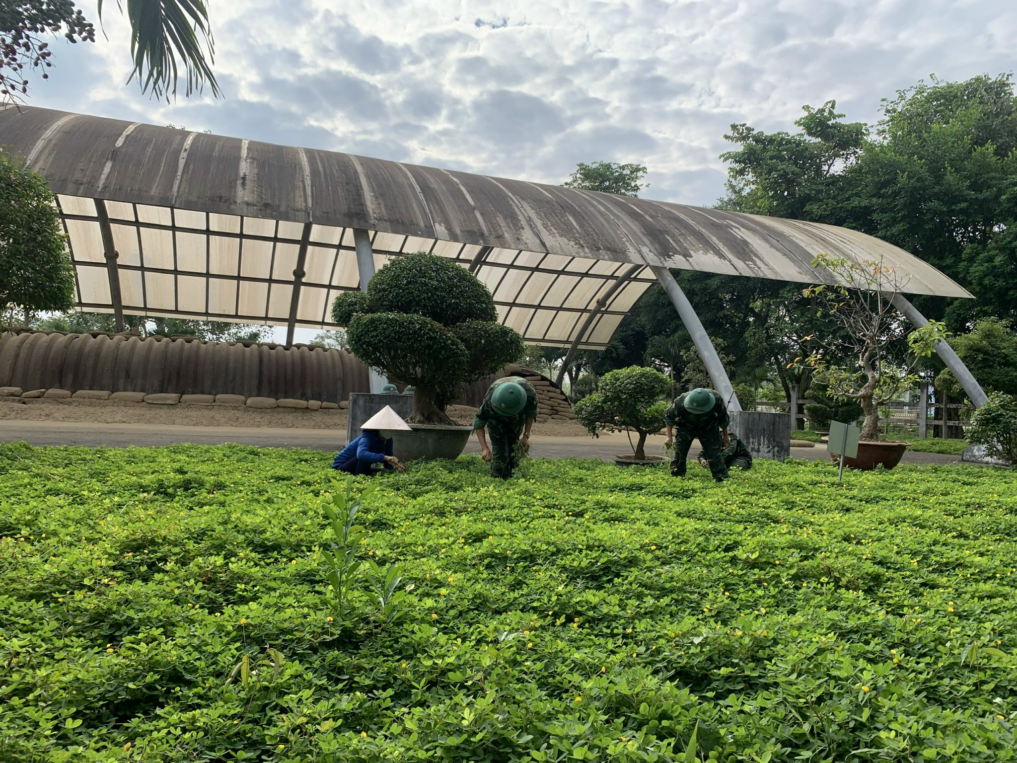 Một số hình ảnh viên chức, người lao động BQLDT và cán bộ, chiến sỹ Trung đoàn Bộ binh 82 tham gia cải tạo cảnh quan môi trường các điểm di tích