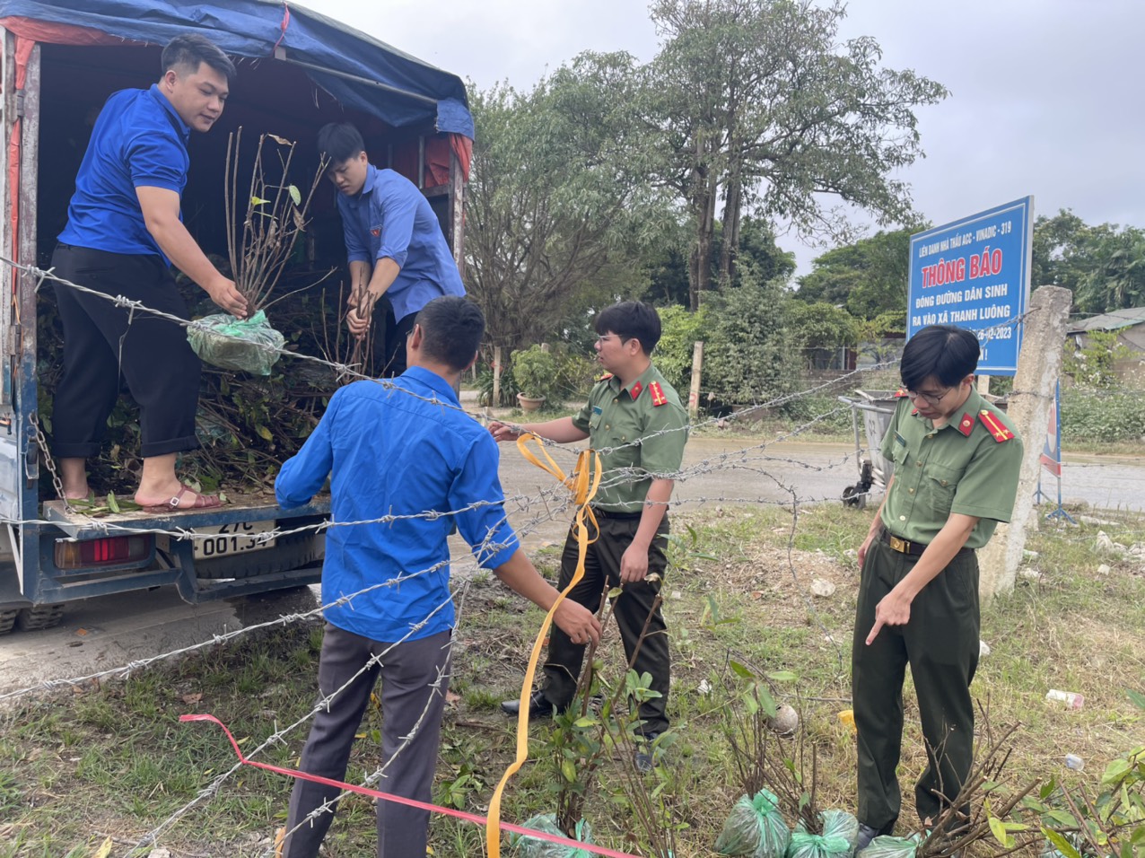 Phối hợp với ĐTN Công an tỉnh trồng hoa