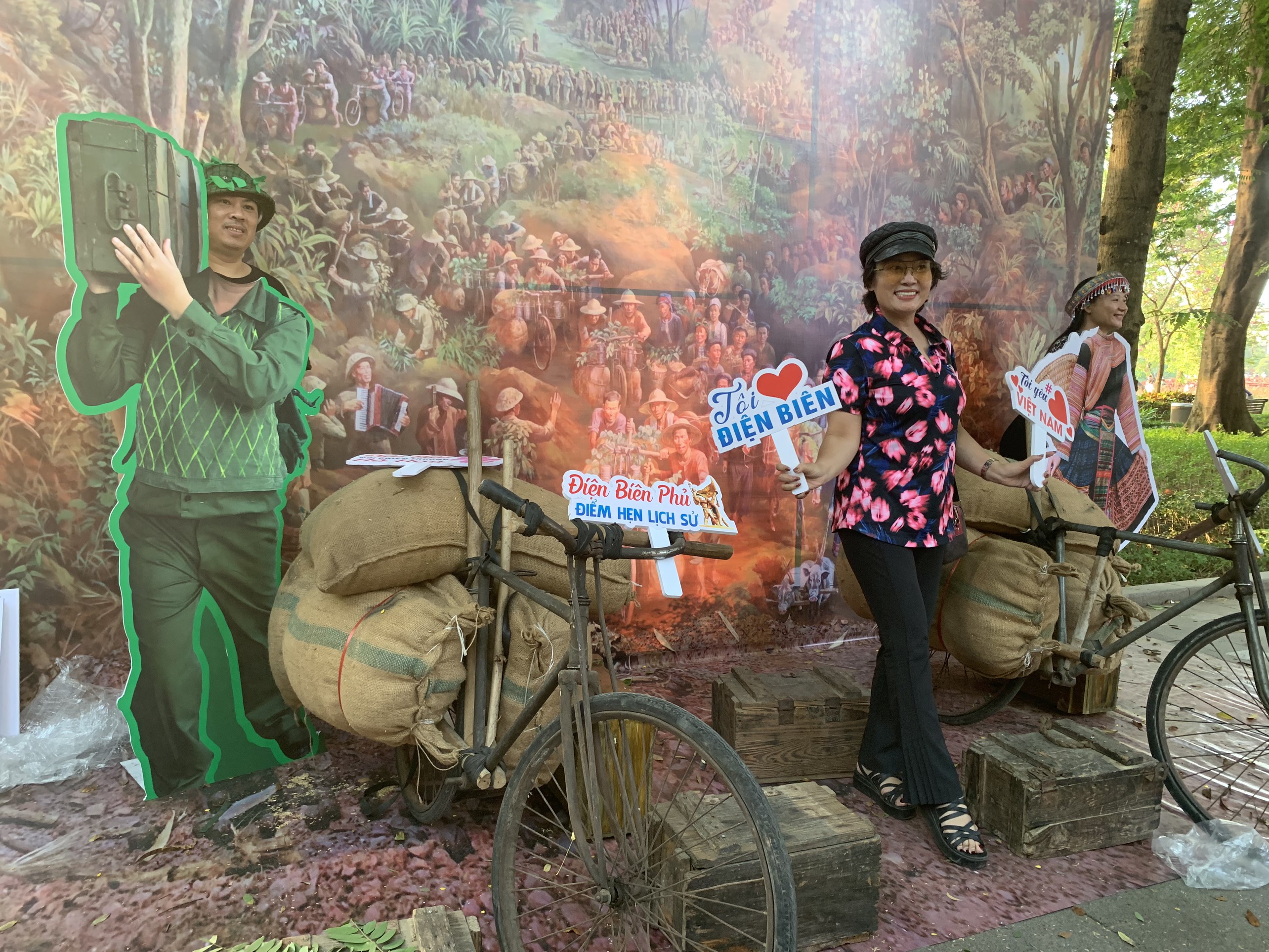 Ngoài ra khi đến tham quan triển lãm Nhân dân và du khách tại Hà Nội sẽ được tham gia các hoạt động trải nghiệm thú vị tại không gian check in, du khách có thể lưu giữ những hình ảnh đẹp mang dấu ấn của Chiến thắng Điện Biên Phủ năm 1954 với những vật dụng: xe đạp thồ, hòm đạn,... Standee hình bộ đội Việt Nam, các cô gái dân tộc Thái và Mông.