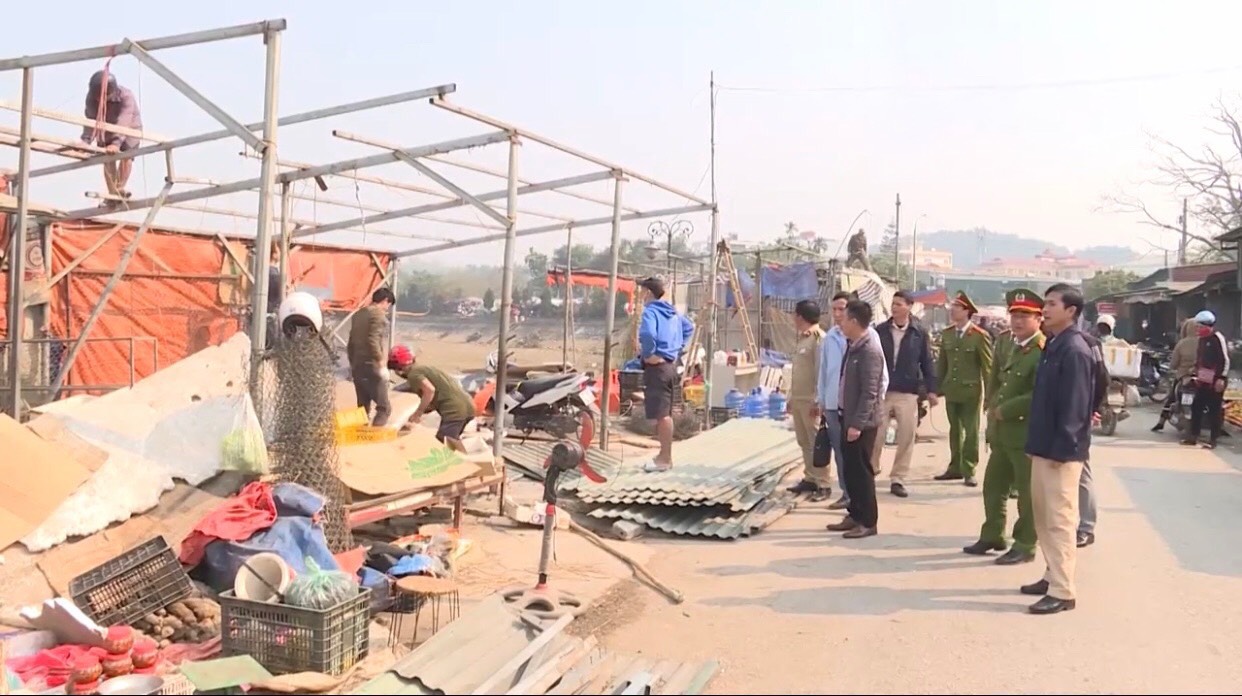Thực hiện Chương trình nhiệm vụ công tác năm 2023, sáng ngày 01/3/2023, Ban Quản lý di tích phối hợp với UBND phường Mường Thanh và các cơ quan chức năng thành lập tổ công tác tổ chức kiểm tra, đôn đốc, yêu cầu các hộ kinh doanh thực hiện tháo dỡ vật kiến trúc, hoàn trả mặt bằng di tích Trung tâm Tập đoàn cứ điểm Điện Biên Phủ, gần 30 tiểu thương, hộ kinh doanh tại khu vực chợ tạm Mường Thanh đã đồng loạt tháo dỡ, di chuyển các vật kiến trúc gồm lán ở, nhà tạm và tài sản buôn bán…