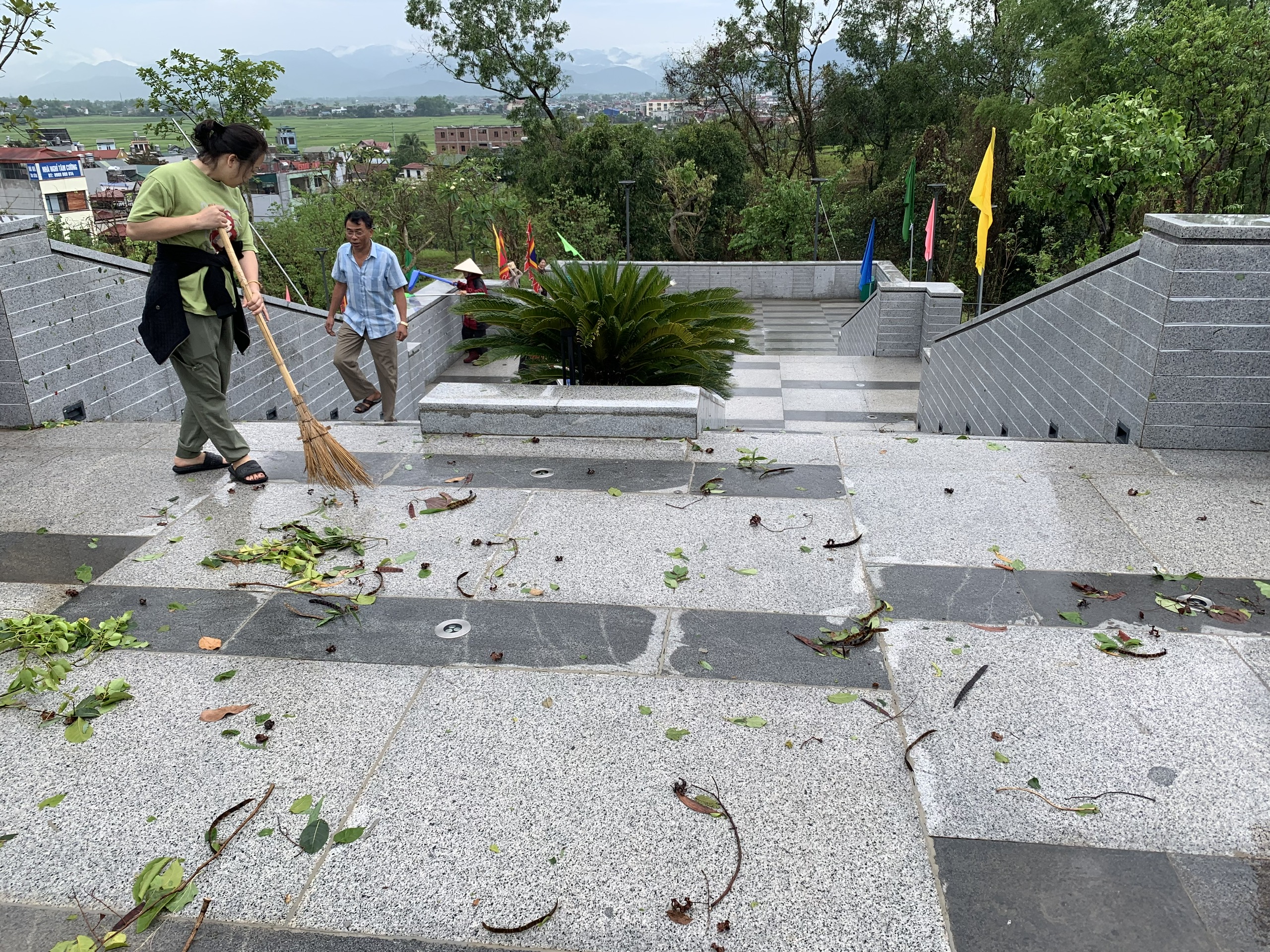 Một số hình ảnh viên chức, người lao động BQLDT tham gia khắc phục hậu quả mưa dông, vệ sinh, cải tạo cảnh quan môi trường tại các điểm di tích.