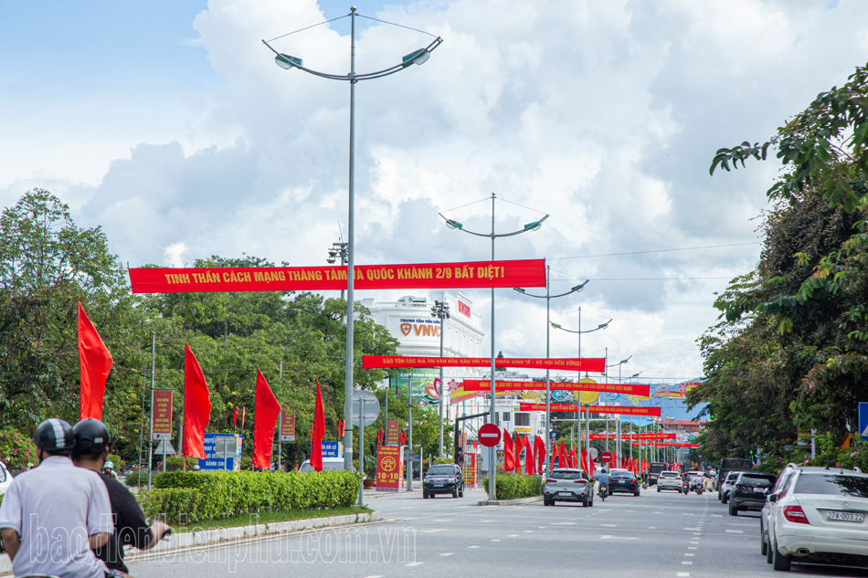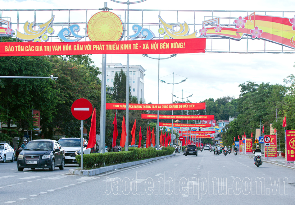 Chỉ còn vài ngày nữa là tới Quốc khánh 2/9, các con đường trong TP. Điện Biên Phủ rực rỡ cờ hoa, băng rôn chào mừng.