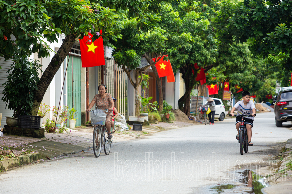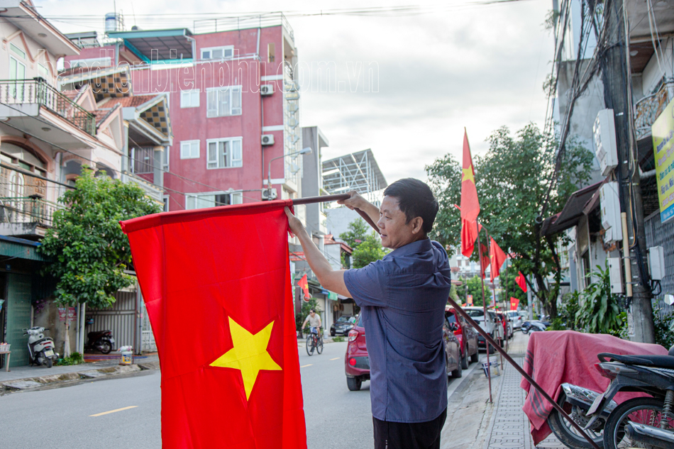Người dân TP. Điện Biên Phủ treo cờ mới hướng tới ngày đại lễ.