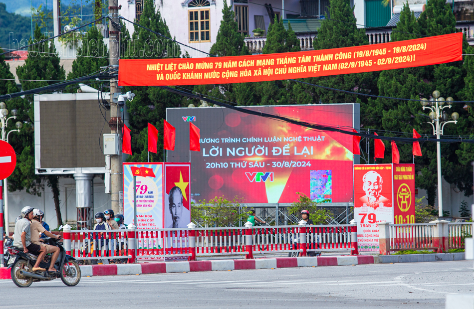 Hướng tới kỷ niệm 79 năm Cách mạng Tháng Tám và Quốc khánh (2/9/1945 – 2/9/2024), những ngày này trên khắp các tuyến đường, ngõ phố TP. Điện Biên Phủ được tô điểm thêm sắc đỏ thắm của cờ đỏ sao vàng cùng các khẩu hiệu chào mừng phấp phới.