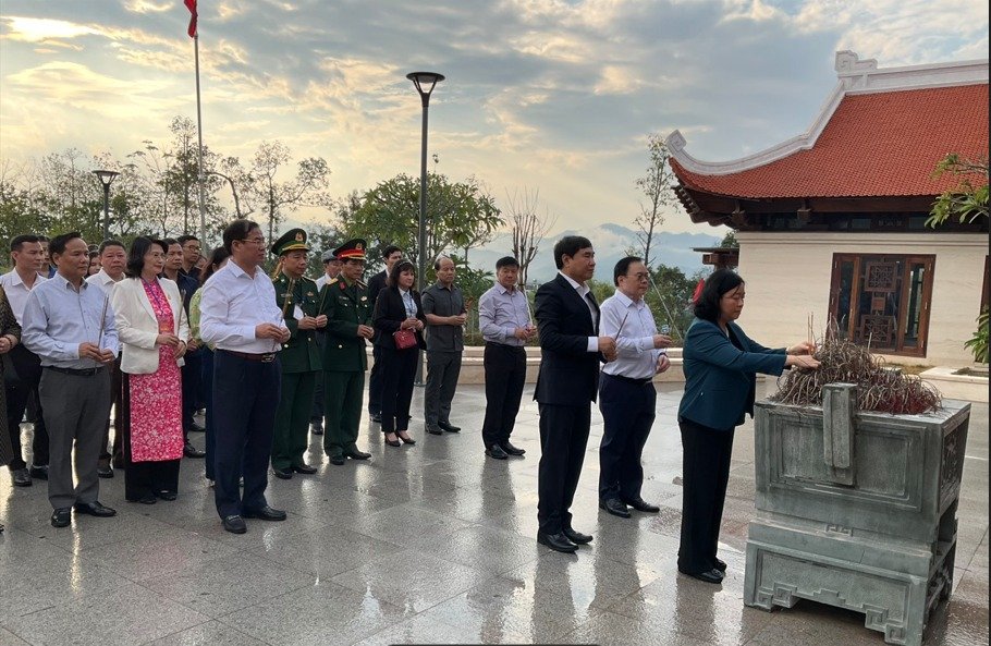 Chiều ngày 12/01/2024, Đồng chí Bùi Thị Minh Hoài, Bí thư Trung ương Đảng, Trưởng Ban Dân vận Trung ương cùng đoàn Đại biểu dự Lễ hội Hoa Anh Đào Điện Biên Phủ năm 2024 đến dâng hương và trồng cây lưu niêm tại Đền thờ liệt sĩ tại Chiến trường Điện Biên Phủ.