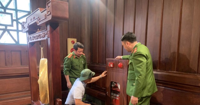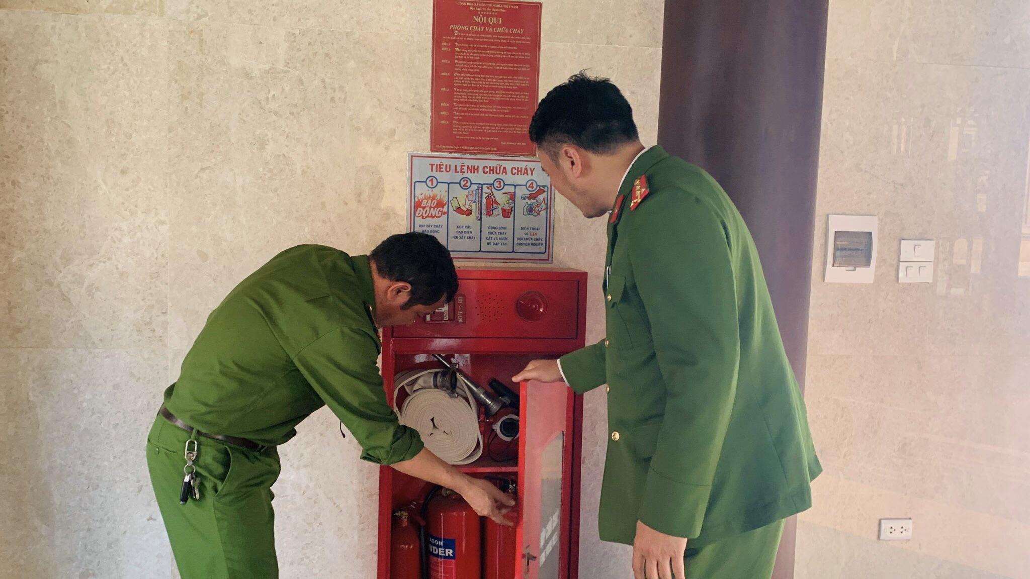 Kiểm tra thiết bị phòng cháy chữa cháy tại Đền thờ liệt sĩ tại Chiến trường Điện Biên Phủ