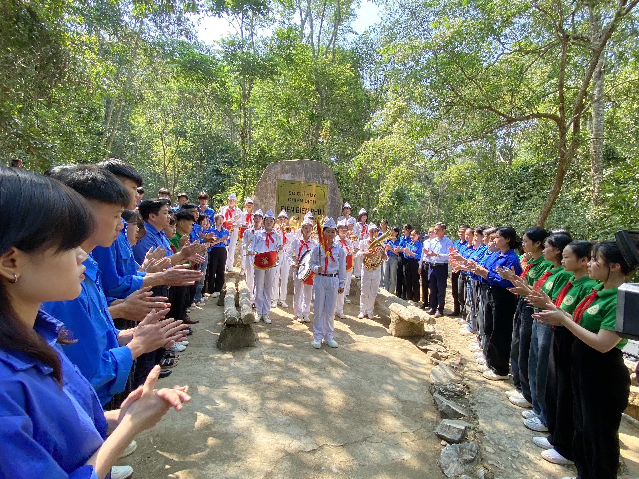 Sau lễ kết nạp Đoàn viên mới, các thầy cô giáo và các em học sinh đã được nghe Hướng dẫn viên của Ban Quản lý di tích giới thiệu về Sở chỉ huy Chiến dịch Điện Biên Phủ ở Mường Phăng và sự lãnh đạo tài tình, chỉ đạo sáng suốt của Đại tướng Võ Nguyên Giáp - Tổng Tư lệnh Quân đội Nhân dân Việt Nam trong Chiến dịch Điện Biên Phủ góp phần quan trọng làm nên Chiến thắng Điện Biên Phủ "Lừng lẫy năm châu, chấn động địa cầu" ngày 07/5/1954. Qua đó, giúp cho các em hiểu rõ hơn về tầm vóc, giá trị, ý nghĩa của Chiến thắng Điện Biên Phủ đồng thời tiếp tục bồi dưỡng lòng yêu nước, niềm tự hào dân tộc và phát huy truyền thống Điện Biên Phủ anh hùng, góp phần cùng toàn Đảng, toàn dân, toàn quân ta xây dựng, phát triển đất nước Việt Nam ngày càng phồn thịnh, hạnh phúc./.