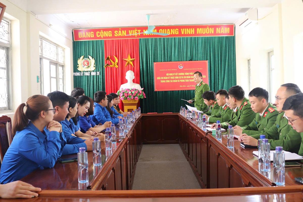 Chiều ngày 03/01/2025, tại Hội trường Phòng Kỹ thuật hình sự (Công an tỉnh Điện Biên) đã diễn ra Hội nghị ký kết Chương trình phối hợp giữa Chi đoàn Kỹ thuật hình sự và Chi đoàn Ban Quản lý di tích về công tác Đoàn và phong trào thanh thiếu niên.