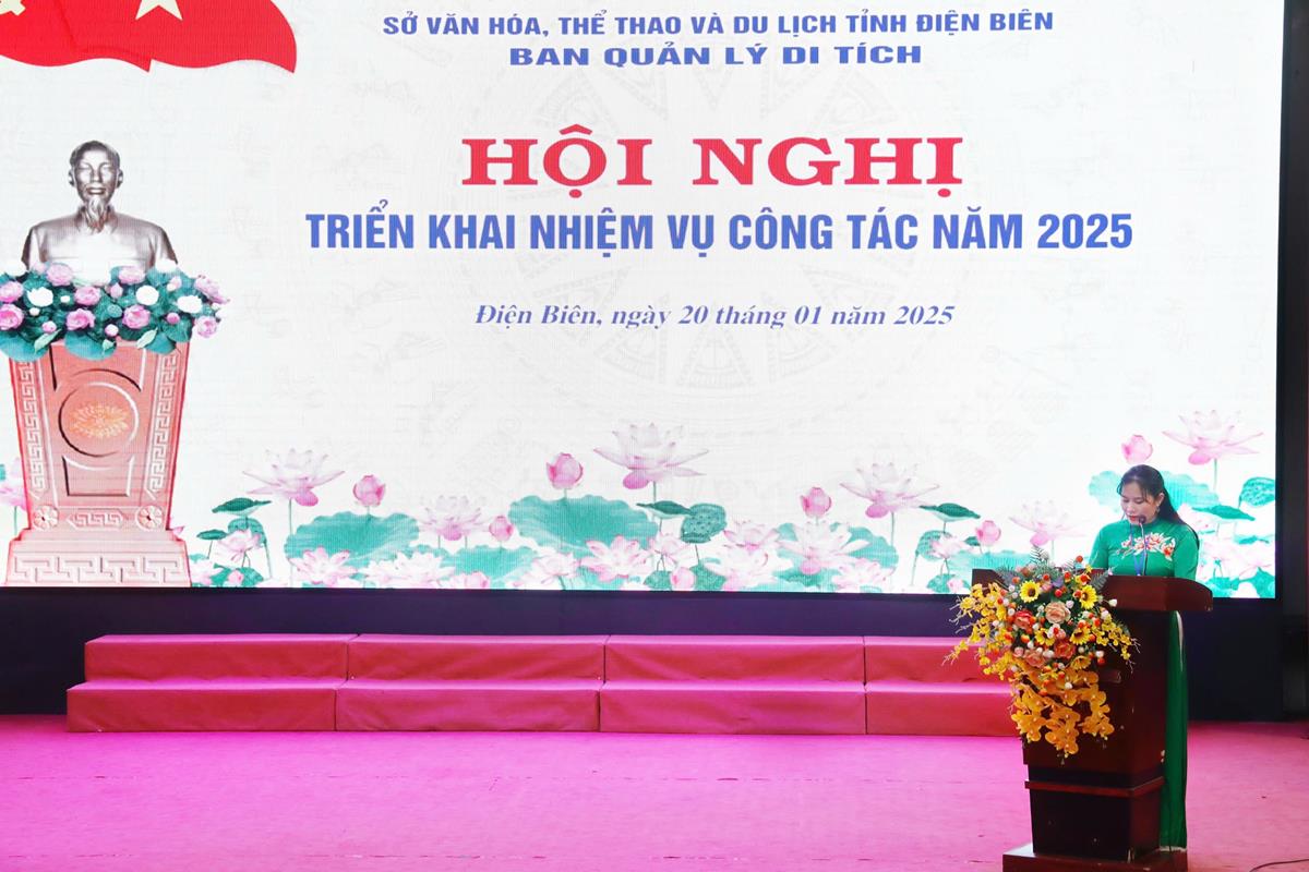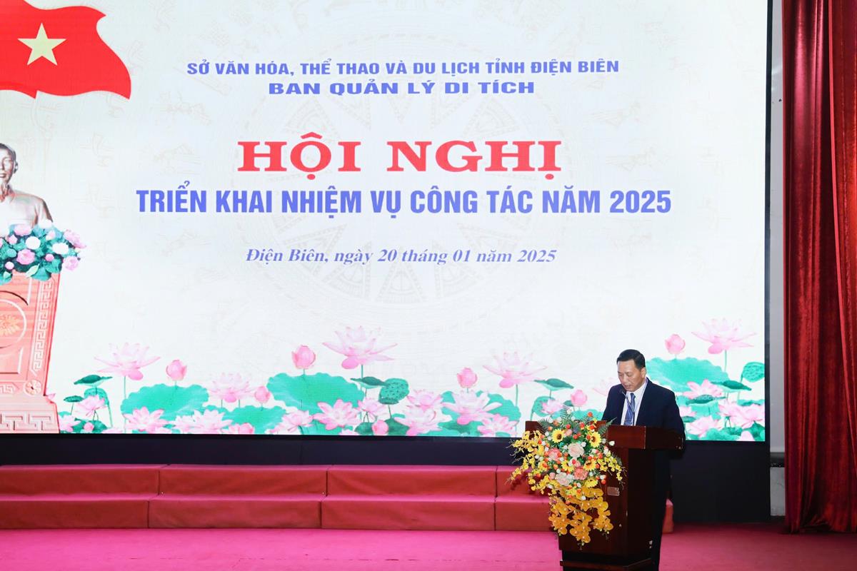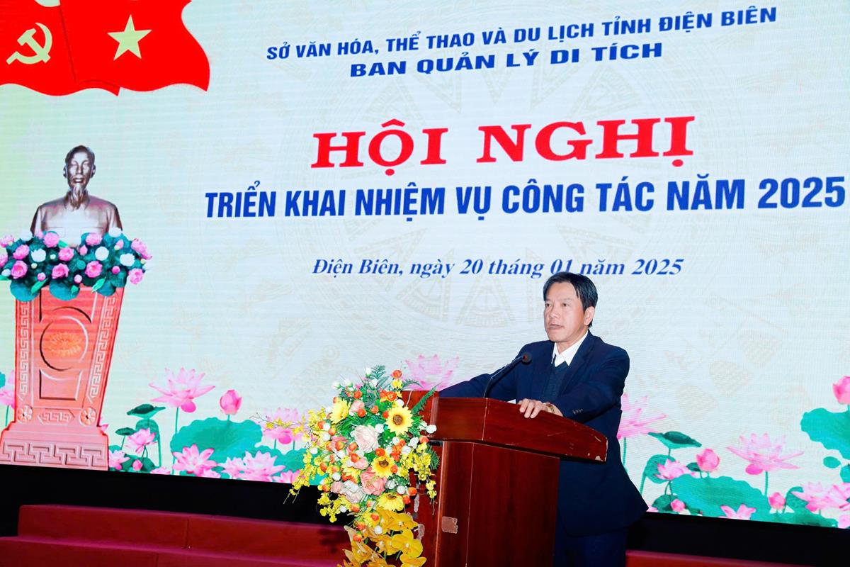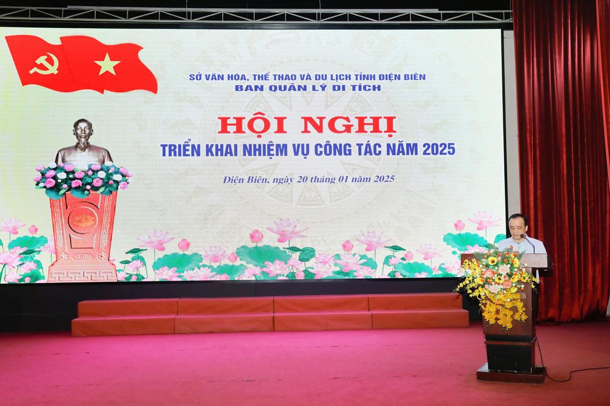 Phát biểu chỉ đạo tại Hội nghị, đồng chí Nguyễn Hoàng Hiệp - Uỷ viên Ban Thường vụ Đảng uỷ, Phó Giám đốc Sở Văn hóa, Thể thao và Du lịch đã biểu dương, ghi nhận những kết quả đã đạt được của Ban Quản lý di tích; đồng thời, chỉ ra những khó khăn, tồn tại hạn chế cần khắc phục. Với mục tiêu, nhiệm vụ và giải pháp năm 2025, đồng chí Phó Giám đốc Sở yêu cầu Ban Quản lý di tích xây dựng chương trình cụ thể, đặc biệt quan tâm một số nhiệm vụ cấp bách trong công tác bảo tồn, tôn tạo và phát huy giá trị Di tích lịch sử Quốc gia đặc biệt Chiến trường Điện Biên Phủ, công tác cải tạo cảnh quan và các điều kiện cần thiết để chuẩn bị phục vụ khách tham quan du lịch vào các ngày lễ lớn, ngày Tết, ngày kỷ niệm các sự kiện chính trị của tỉnh và cả nước.