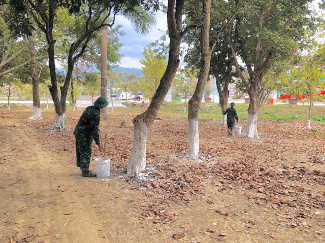 Bón phân, quét vôi gốc cây chống sâu bệnh xâm nhiễm