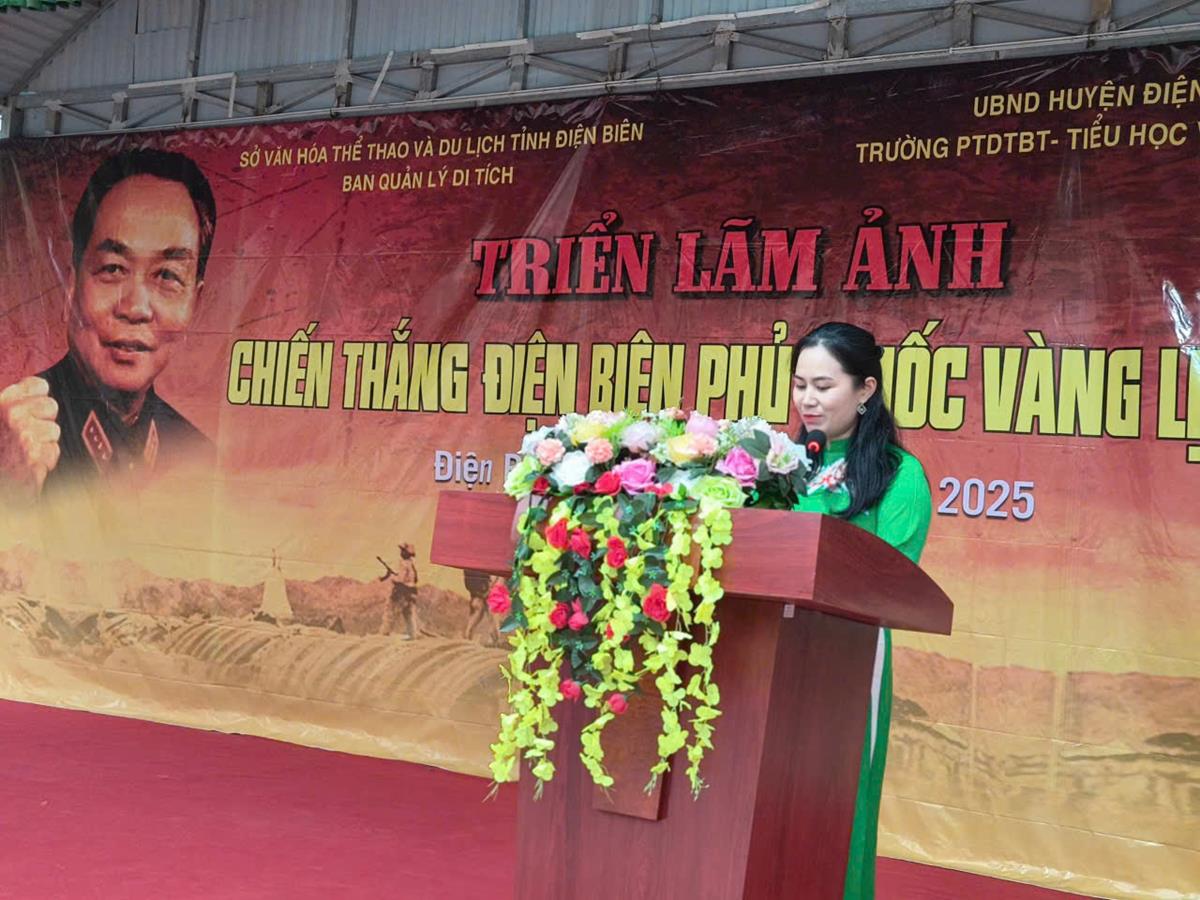 Phát biểu Khai mạc triển lãm đồng chí Phạm Thị Thảo - Phó Giám đốc Ban Quản lý di tích tỉnh Điện Biên cho biết: Hoạt động trưng bày triển lãm ảnh chủ đề chiến thắng Điện Biên Phủ là hoạt động thường xuyên của đơn vị, nhằm tiếp tục tuyên truyền giới thiệu về tầm vóc, giá trị, ý nghĩa to lớn của Chiến thắng Điện Biên Phủ năm 1954, khẳng định vai trò lãnh đạo sáng suốt của Đảng cộng sản Việt Nam, Chủ tịch Hồ Chí Minh; Đại tướng Võ Nguyên Giáp tinh thần đại đoàn kết của quân và dân Việt Nam giúp cho thế hệ trẻ hôm nay - Mầm non tương lai của đất nước luôn trân trọng, biết ơn, giữ gìn thành quả cha ông ta để lại, phấn đấu học tập tốt, xây dựng quê hương Điện Biên ngày càng giàu đẹp hơn. Đồng thời quảng bá về các di tích lịch sử, danh lam thắng cảnh, điểm du lịch hấp dẫn, bản sắc văn hóa của 19 dân tộc sinh sống trên địa bàn tỉnh Điện Biên qua đó làm nổi bật về thế mạnh trong các lĩnh vực chính trị, kinh tế, văn hóa, giáo dục quốc phòng - an ninh của mảnh đất Điện Biên.
