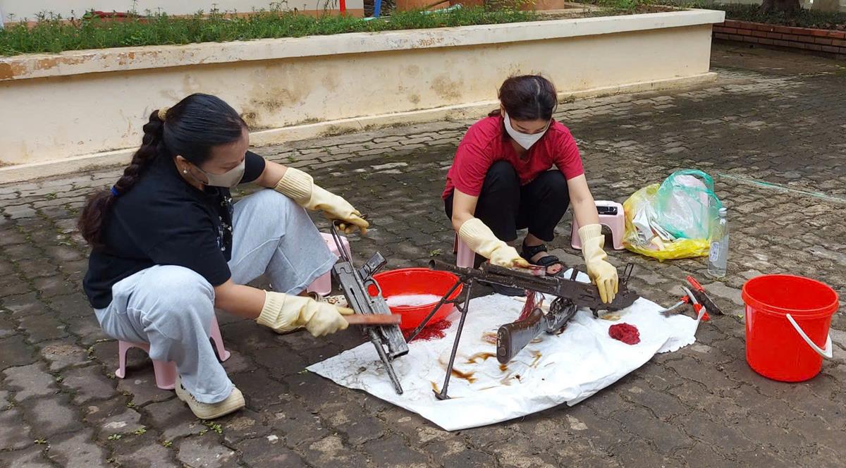 Bảo quản các loại súng trưng bài tại Di tích Đồi A1