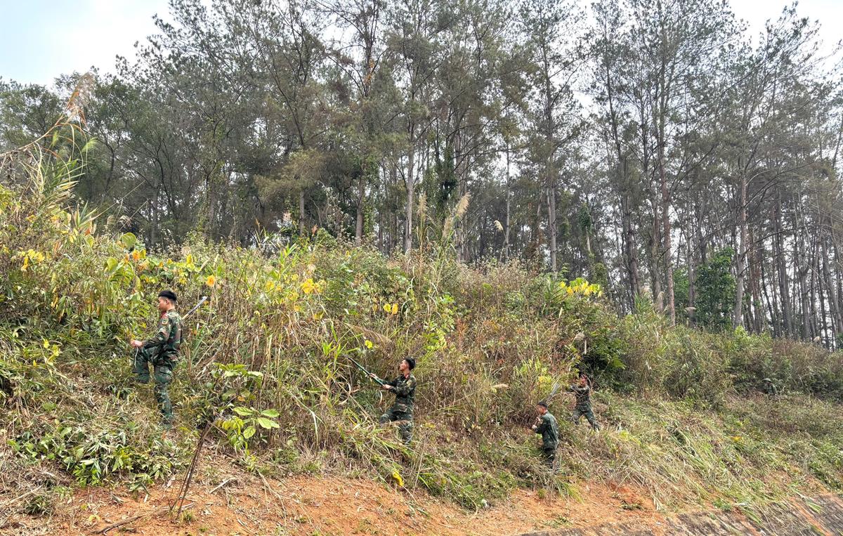 Phát dọn cây tại di tích Đồi D1 (Tượng đài chiến thắng Điện Biên Phủ)