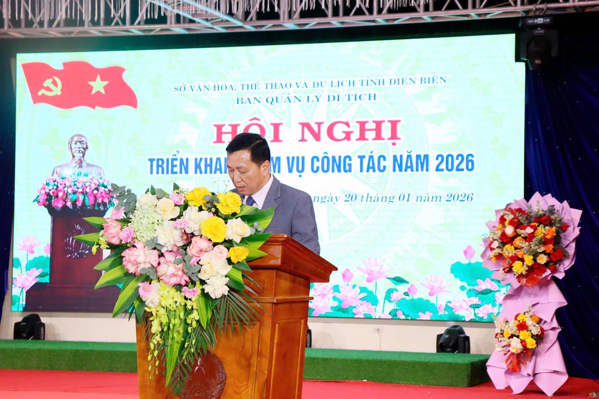 Chiều ngày 20/01/2026, tại Hội trường Hoa Ban - Trung tâm Xúc tiến Đầu tư, Thương mại và Du lịch tỉnh Điện Biên, Ban Quản lý di tích đã tổ chức Hội nghị Triển khai nhiệm vụ công tác năm 2026.
