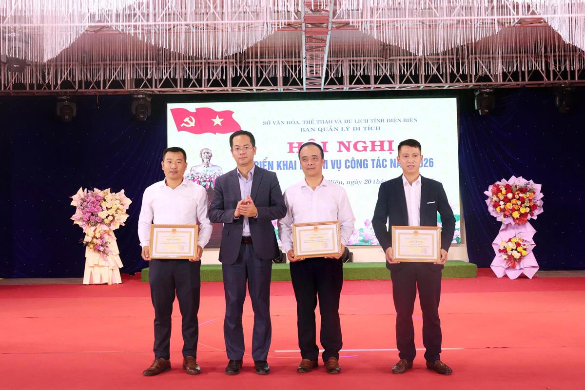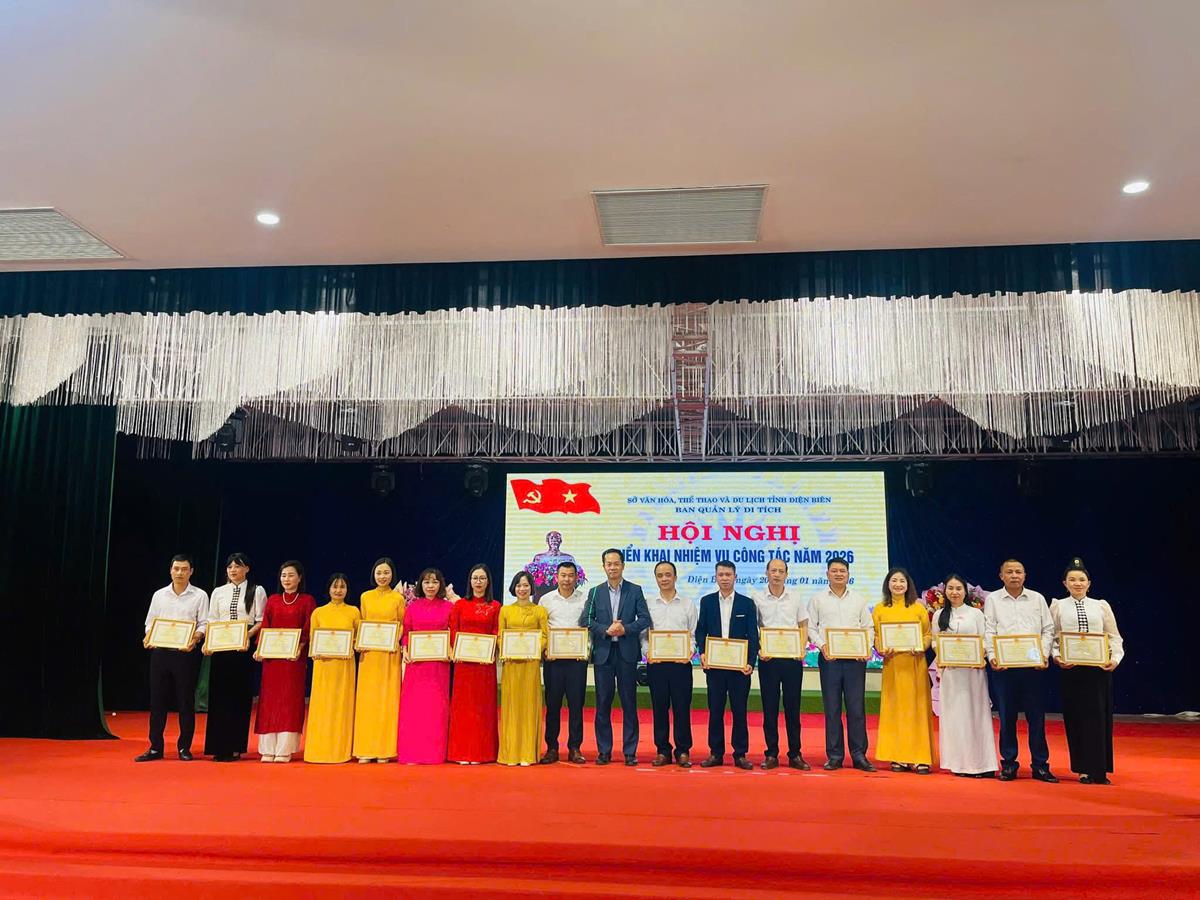 Với những thành tích đã đạt được trong năm 2025, Ban Quản lý di tích đã vinh dự nhận được: Giấy khen của Giám đốc Sở VHTTDL tặng cho tập thể Ban Quản lý di tích và 10 cá nhân trong việc thực hiện các hoạt động tại Lễ hội Hoa Ban năm 2025 và Ngày hội Văn hoá, Thể thao và Du lịch các dân tộc tỉnh Điện Biên lần thứ VIII; 01 tập thể và 07 cá nhân được Giám đốc Sở VHTTDL tặng Giấy khen trong phong trào thi đua yêu nước giai đoạn 2020 - 2025; 04 tập thể và 73 cá nhân được công nhận danh hiệu lao động tiên tiến năm 2025; 03 tập và 24 cá nhân được Giám đốc Sở VHTTDL tặng Giấy khen; 13 cá nhân được công nhận danh hiệu chiến sĩ thi đua cơ sở; 73 cá nhân được công nhận danh hiệu “Công dân học tập”; 01 cá nhân được nhận Giấy khen của Giám đốc Công an tỉnh Điện Biên trong tổ chức các hoạt động và phong trào thi đua kỷ niệm 80 năm Ngày truyền thống CAND và 20 năm Ngày hội toàn dân bảo vệ ANTQ. Đơn vị đã hoàn thiện hồ sơ và trình cấp có thẩm quyền đề nghị UBND tỉnh tặng Bằng khen cho 03 cá nhân.