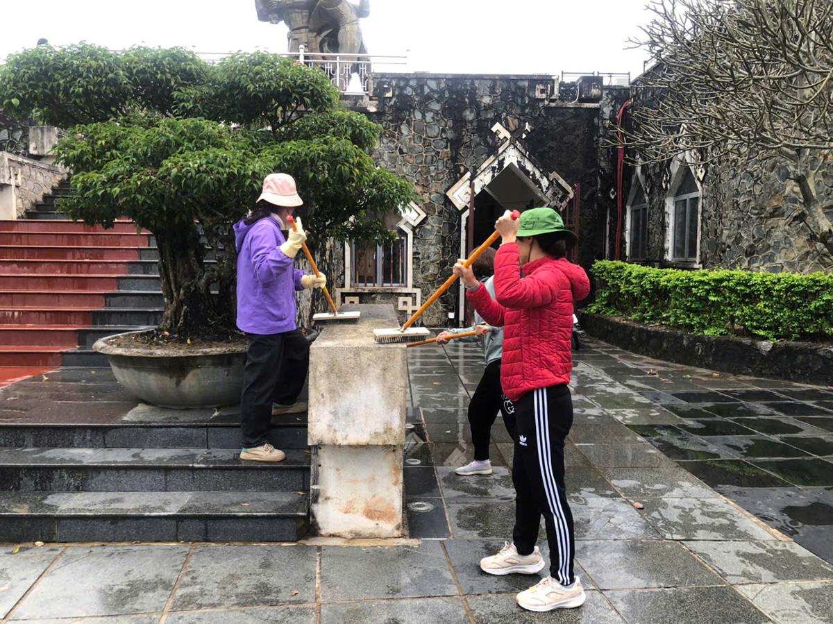 Công tác vệ sinh tại Tượng đài Chiến thắng